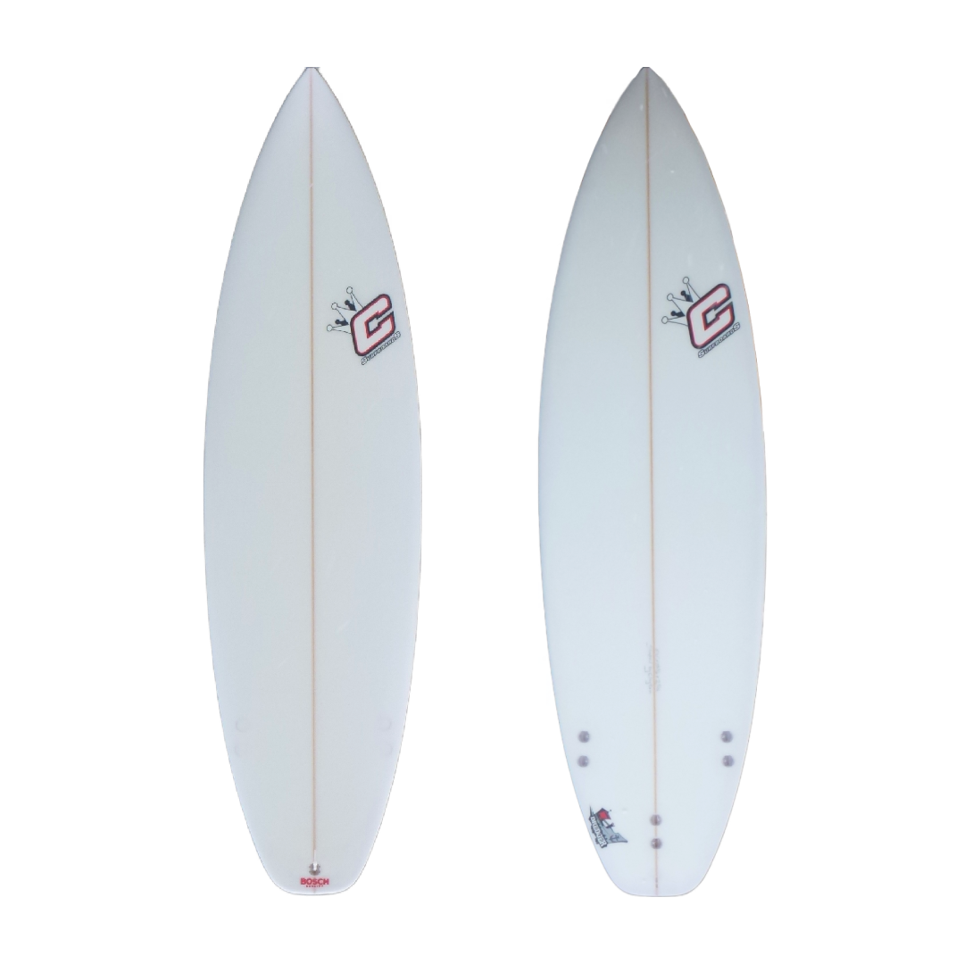 The DREDGER has been designed with drive and manuverability in mind. Surfed at your normal length and slightly shorter by intermediate to experienced surfers. The design has a lower rocker with a slightly fuller nose and tail. The excitement in the design is the high bump next to the side fins creating a pivot point which gives this board its looseness. The board performs well in small to medium size waves and can be customised for those bigger days. Concaves are medium single to double with. The board performs best as a squash tail with a thruster set up. In your quiver this would be that board most ridden in small to medium size surf pivoting on the hip and throwing buckets of water into the air. This board needs to be dominated in the critical parts of the wave.