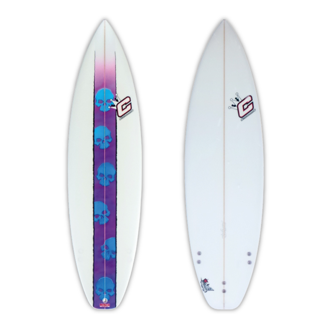 The DREDGER has been designed with drive and manuverability in mind. Surfed at your normal length and slightly shorter by intermediate to experienced surfers. The design has a lower rocker with a slightly fuller nose and tail. The excitement in the design is the high bump next to the side fins creating a pivot point which gives this board its looseness. The board performs well in small to medium size waves and can be customised for those bigger days. Concaves are medium single to double with. The board performs best as a squash tail with a thruster set up. In your quiver this would be that board most ridden in small to medium size surf pivoting on the hip and throwing buckets of water into the air. This board needs to be dominated in the critical parts of the wave.