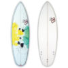 The GYPSY – never staying in one place on the wave – has a combination of speed and manoeuvrability which is almost illegal. The overall generous plan-shape provides a skatey feel and a super wide cut off tail allows for more back foot sensitivity. The light single to double concave and vee out the back increases rail to rail transition and loosens the wide cut off tail. This model is fast down the line and with the increased rail to rail transition it has a high degree of manoeuvrability and also more stable when landing airs. The Gypsy is ridden up to 6 inches shorter than normal and suits either a quad or thruster set up. Ridden by intermediate to advanced surfers in small to medium size waves.